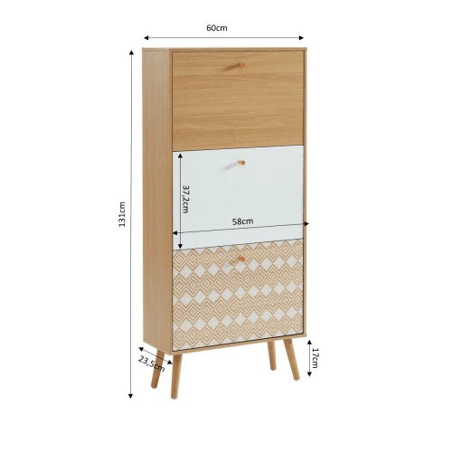 Baita Meubles D’entrée Et à Chaussures Meuble à Chaussures Cannage Rotin 3 Portes 60cm Bois Clair