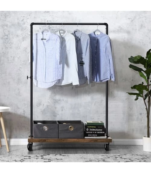 Casâme Valets De Nuits Et Portants Portant 2 étagères Style Industriel – Noir
