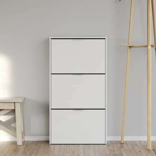 Le Placard à chaussures 3 tiroirs modèle Rubi est idéal pour ranger jusqu’à 18 paires de chaussures ; Il dispose de 3 larges portes, vous pouvez placer ce meuble à chaussures dans votre chambre, dressing ou couloir pour égayer la pièce.