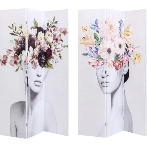 Kare Design Paravents Paravent Blanc Imprimé Femmes Et Fleurs
