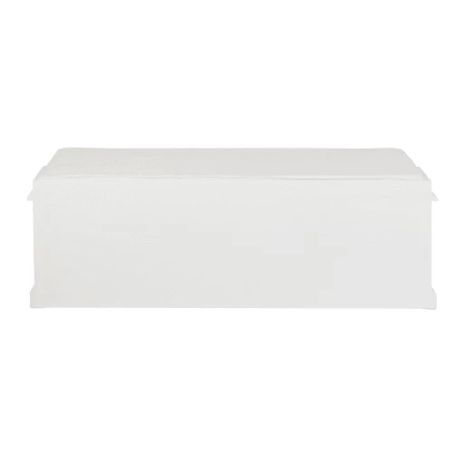 Le mobilier de cette collection en peuplier, paulownia et MDF au coloris blanc cassé mat s’harmonise parfaitement aux plateaux et aux tiroirs en rotin présents dans la plupart des meubles.