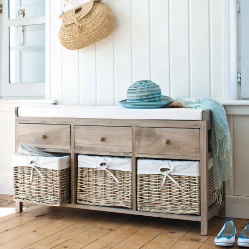 Magnifique et pratique, ce banc de rangement bois ELOISE s’avère très utile pour y ranger les jouets des enfants ou encore pour cacher de précieux trésors. Particulièrement décoratif avec son vernis naturel, ce meuble de rangement permet aussi de classer les objets en fonction de vos inspirations. A installer dans la maison, cette jolie console de rangement en bois revêt un style chaud pour embellir toutes vos pièces à vivre.