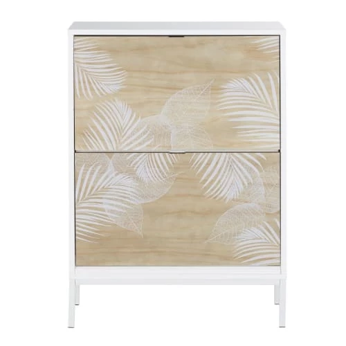 Façade des tiroirs: panneaux de fibres de moyenne densité (E1) placage pin, finition vernis polyuréthane transparent avec motifs coloris blanc