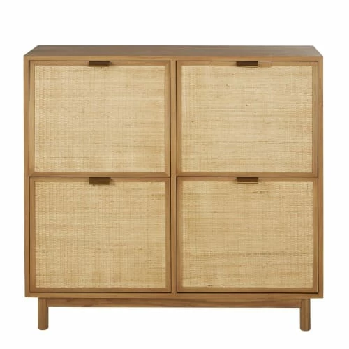 Trappes pour rangement des chaussures (4) : panneaux de fibres de moyenne densité (E1) et placage acacia teinté noisette, finition vernis acrylique transparent mat