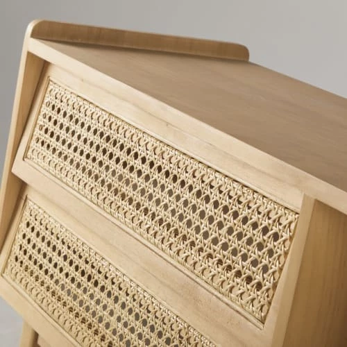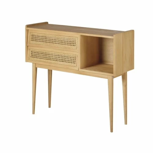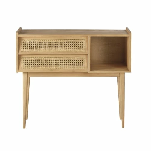 Tiroirs (2), et panneau de fond : contreplaqué et cannage rotin, finition vernis acrylique mat