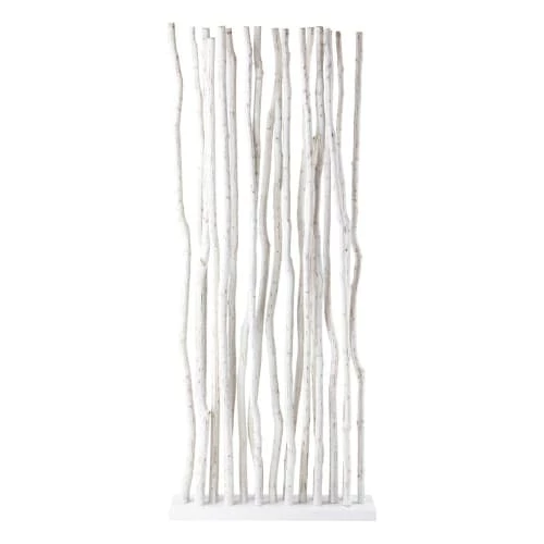 Ce paravent en bois est formé de branches de teck effet blanchi.