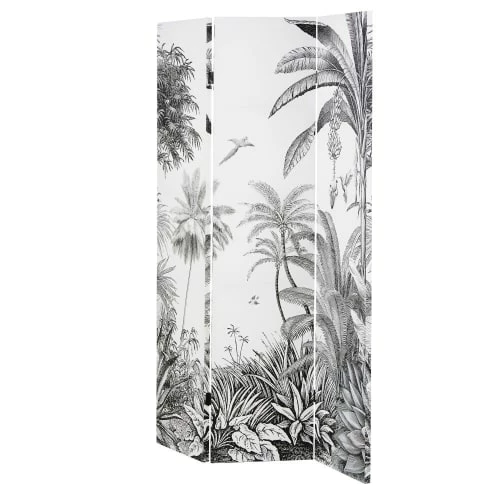 Entre le style classique et la tendance exotique chic, le paravent imprimé forêt tropicale noir et blanc PARADISE a de quoi nous transporter ! Son imprimé reprend les codes de l’imagerie classique mais se modernise grâce à une scène de nature plus originale. Son coloris noir et blanc vous permettra de l’intégrer facilement dans tous les types d’intérieur. Il ne vous restera plus qu’à trouver la pièce où vous souhaitez mettre en valeur ce paravent.