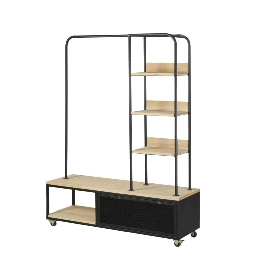 Le minimalisme s’invite dans le design du portant à roulettes en sapin et métal noir REBEL. Le mélange de matières authentiques lui offre un petit côté indus revisité. Pour une organisation impeccable, ce portant à roulettes accueillera les essentiels de la garde-robe de votre enfant, qui deviendront un atout déco. Son tiroir s’offre une petite originalité avec une devanture grillagée, juste ce qu’il faut. De la simplicité, et de la personnalité, pour un rendu harmonieux qui fera sensation dans tous les types de déco.