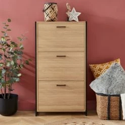 Baita Meubles D’entrée Et à Chaussures Meuble A Chaussures Motifs Et Effet Chêne 3 Portes 60cm
