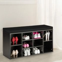 Tectake Meubles D’entrée Et à Chaussures Meuble à Chaussures Banc Effet Bois Noir