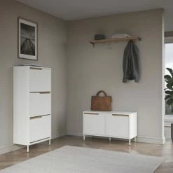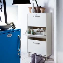 Tenzo Meubles D’entrée Et à Chaussures Meuble à Chaussures En Bois 3 Portes H131cm Blanc