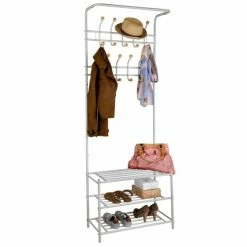 Tectake Meubles D’entrée Et à Chaussures Porte Manteau Avec 3 étagères à Chaussures Blanc