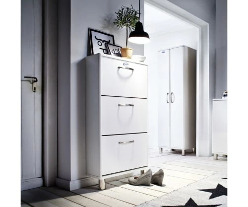 Baita Meubles D’entrée Et à Chaussures Meuble à Chaussures Cannage Rotin 3 Portes 60cm Bois Clair