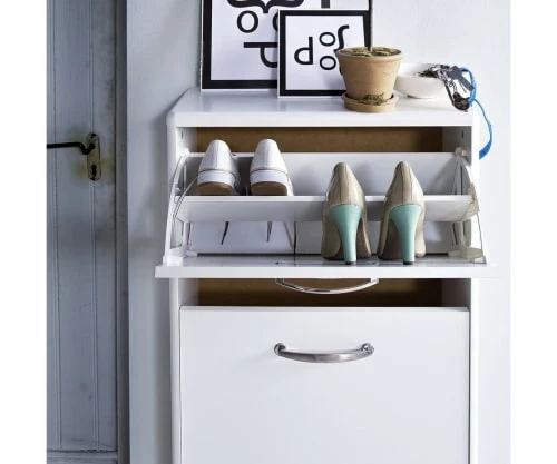 Maisons Du Monde Meubles D’entrée Et à Chaussures Meuble à Chaussures 2 Portes Motif Végétal Blanc