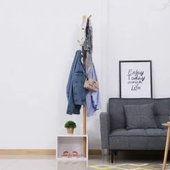 Homcom Meubles D’entrĂ©e Et Ă Chaussures Meuble Rangement Porte-manteaux 2 En 1 Blanc Bois Bambou