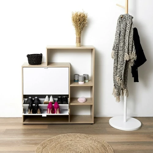 Maisons Du Monde Meubles D’entrée Et à Chaussures Meuble à Chaussures 2 Portes Motif Végétal Blanc