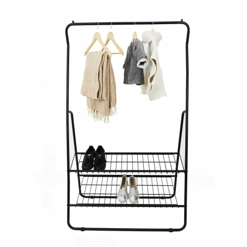 Casâme Valets De Nuits Et Portants Portant 2 étagères Style Industriel – Noir
